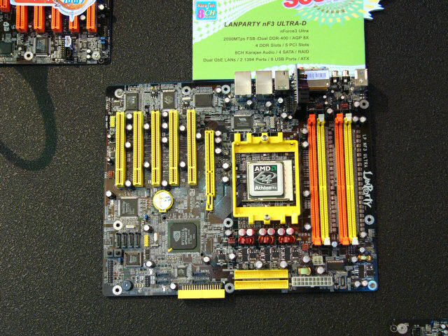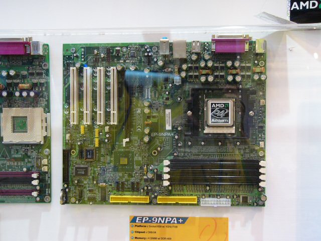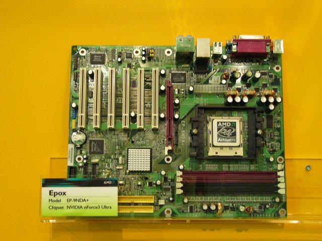 NVIDIA의 칩셋은 출시되지 않은 두 가지가 전시되어 있었다. 하나는 nForce3 250Gb를 Socket 939에 대응시킨 "nForce3 Ultra" 그 이외의 사양은 nForce3 250Gb에 준한다. 구성은 어느 메이커도 거의 공통으로, AGP × 1, PCI × 5와 같은 표준 사양이다. 마더 보드의 출시는 7월경 예정이다.