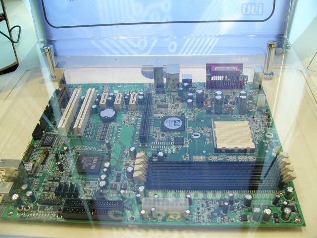 ULi는 4월에 PCI Express로 노스 브릿지와 연결되는 사우스 브릿지 "M1573"을 발표했지만, COMPUTEX 회장에서는 ATI의 미발표 노스 브릿지와 함께 평가용 메인 보드를 전시했다.