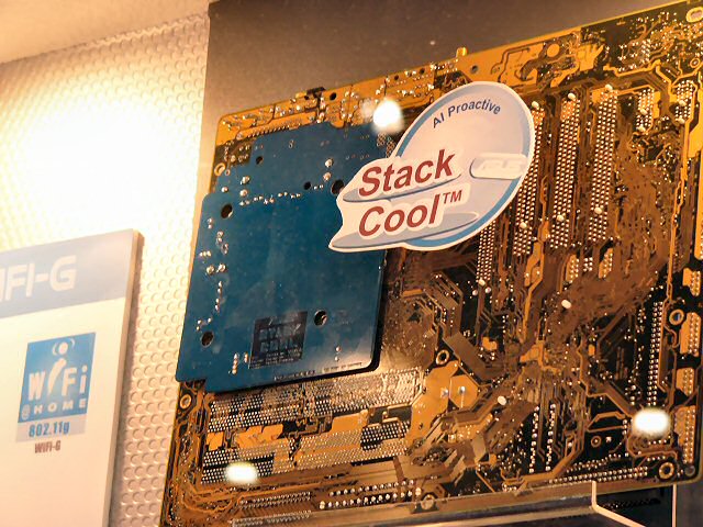 ASUSTeK은 무선 LAN 온보드 탑재와 자체 냉각판 등으로 업체와 차별화를 꾀하고 있다. 회사의 LGA775 대응 제품은 모두 "Stack Cool" 이라는 약 15cm 사각 기판이 첨부된다. Stack Cool는 열을 발산시키는 효과를 가지고 있으며, 메인 보드의 뒷면에 부착해 마더 보드 열원의 온도를 약 10도 낮출 수 있다고 한다.