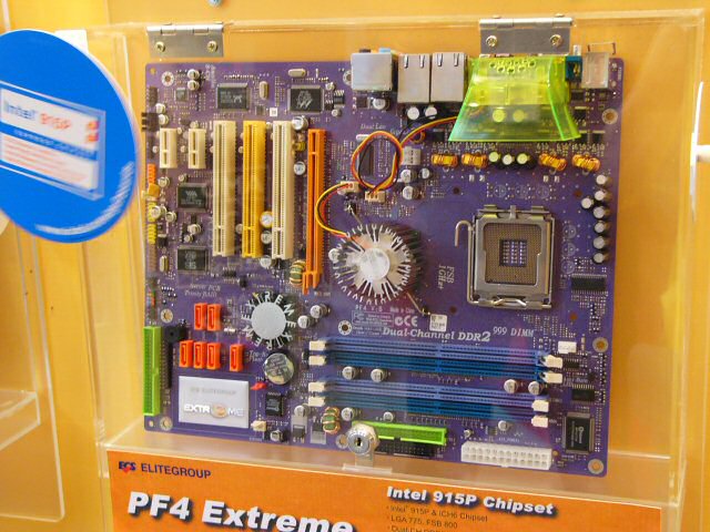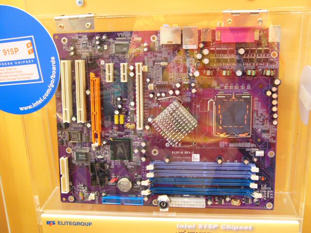 COMPUTEX 장소에서 공식적으로 공개된 Intel의 PCI Express 칩셋 "Intel 915 (코드 명 Grantsdale) / 925X (코드 네임 Alderwood) Express"시리즈는 타사 칩셋과 달리 확장 슬롯 구성이 거의 결정되어 있기 때문에 각사의 마더 보드의 사양은 거의 일률적으로 되어있다. 하지만, ECS가 Intel 915P를 탑재하면서 AGP를 지원하는 메인 보드를 전시하는 등 독특한 기능을 가진 것도 일부 전시되었다.