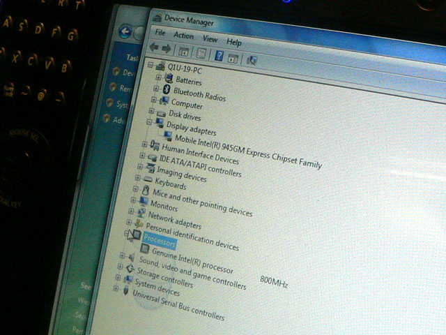 삼성 발표회에서 전시되고 있던 Q1 Ultra를 체크한 결과, 프로세서는 "Genuine Intel Processor"라고만 표시되어 있으며, 브랜드는 확인할 수 없었다. 그러나 동작 클럭이 800MHz 인 것으로 나타났다. 또한 내장 GPU는 Intel 945GM에 내장된 것으로 되어 있기 때문에 아마 Intel 945GM이나 945GM의 소형 패키지 버전인 945GMS라고 추측된다.