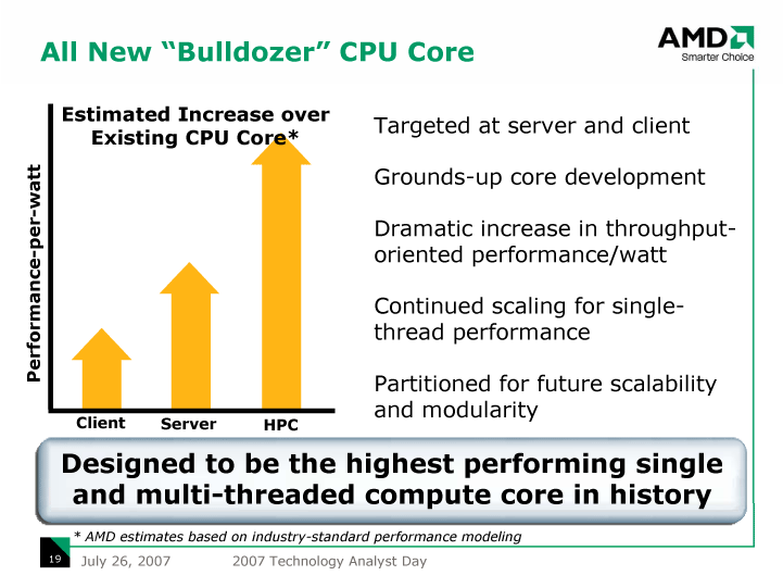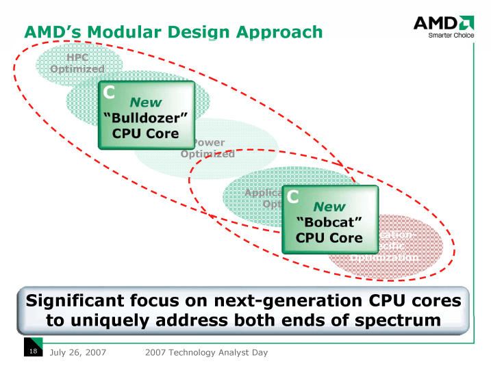 그렇지만 많은 PC 업계 관계자에게는 이것은 놀라운 소식이 아니다. 이미 올해 (2007년) 가을 무렵에, AMD는 Bulldozer는 2010 년경으로, 그때까지 K8 / K10 마이크로 아키텍쳐가 계속되는 것을 전하고 있었기 때문이다. 8월까지 Bulldozer가 "FUSION (퓨전)"세대에서 사용된다고 설명되어 있었기 때문에 그 계획이 수정된 것이다. 그것은 12월 "2007 Financial Analyst Day"에서 공식적으로 공개된 것에 지나지 않는다. 덧붙여서, AMD는 Bulldozer가 없어진다고 설명도 하지 않는다고 한다. (결국 1세대 퓨전은 K10 + GPU = 라노)