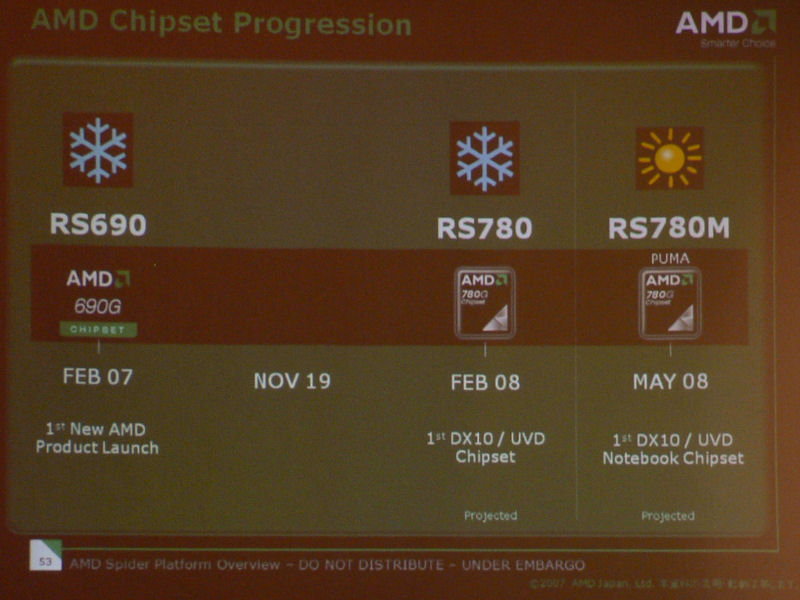 또한, 2008년 2월에는 DirectX 10 / UVD 지원 비디오 기능을 내장한 "AMD 780G"가, 5월에는 그 모바일 버전이 예정되어 있다.