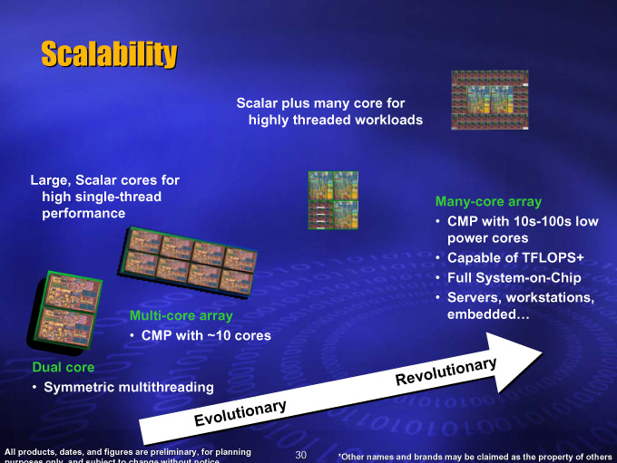 Intel이 2004 년에 나타낸 매니 코어의 비전 슬라이드