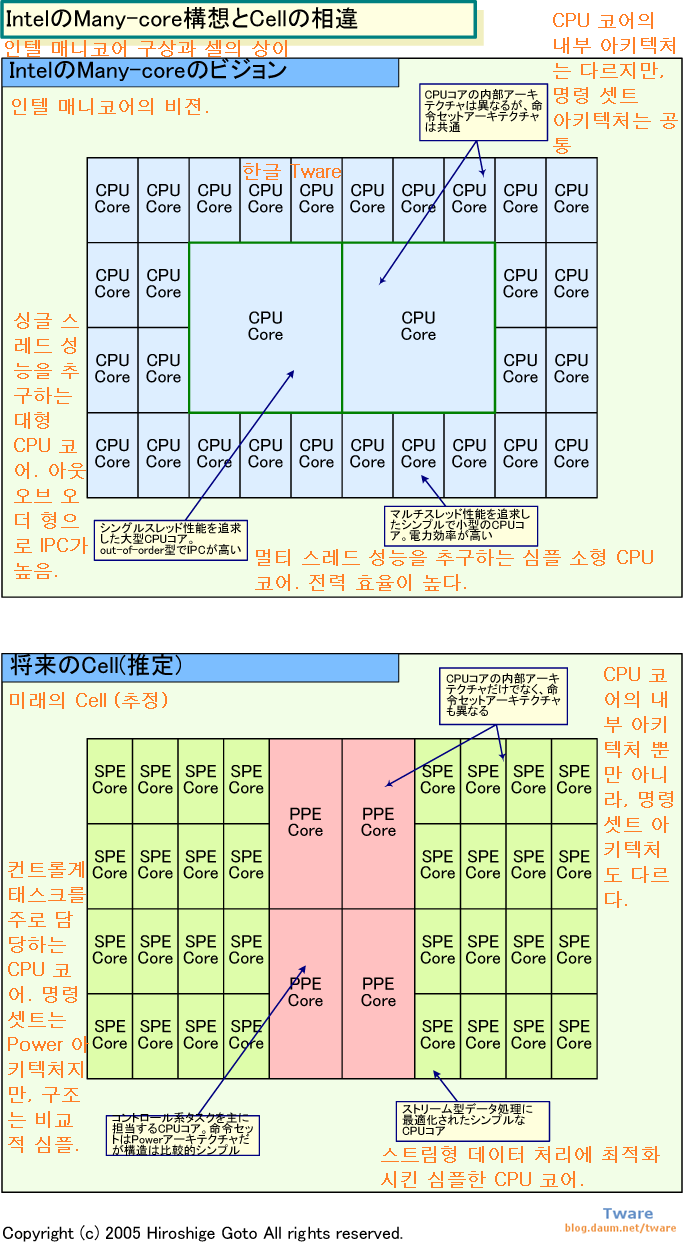 Intel의 매니 코어 구상과 Cell의 차이