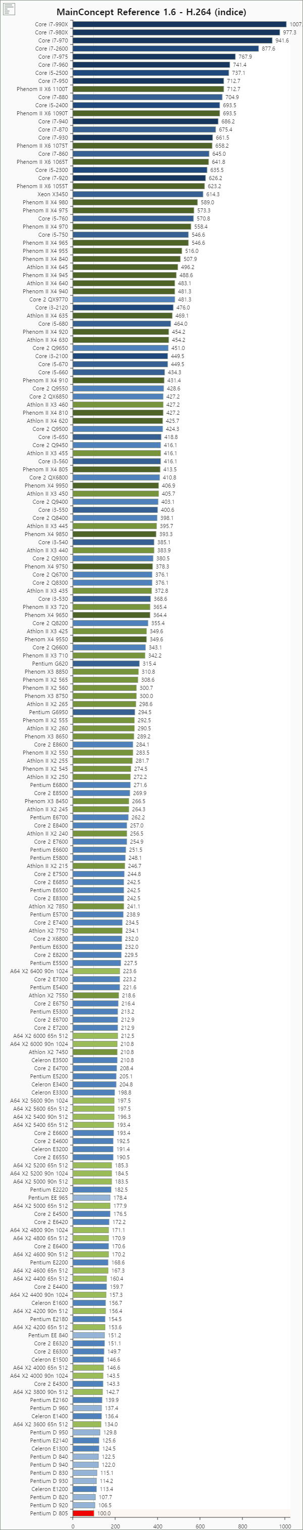 펜티엄 D 805를 100%의 성능으로 볼때 성능차이