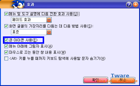 XP 초기와 달리 모니터의 해상도가 높아졌기 때문에, 비스타 이후의 운영체제 처럼 바탕 화면 아이콘도 크게 만들고자 하면, 아래와 같이 하면 됩니다.