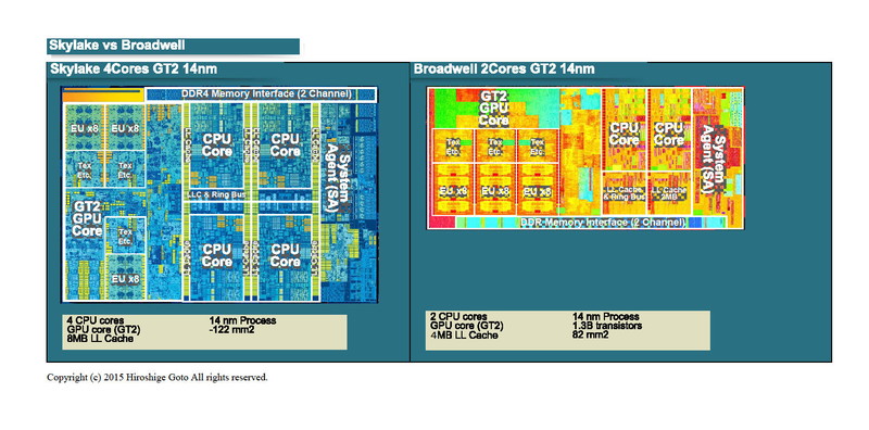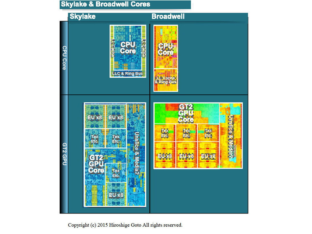 Skylake와 Broadwell의 CPU & GPU 유닛 다이 비교