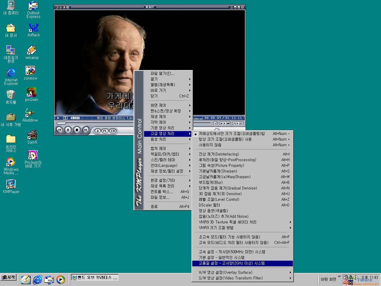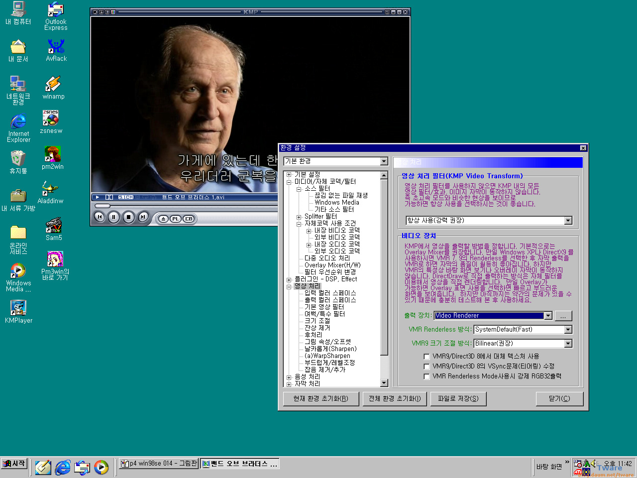 펜티엄4 윈도우 98SE 에서 KMP로 H.264 영상 돌려보기.