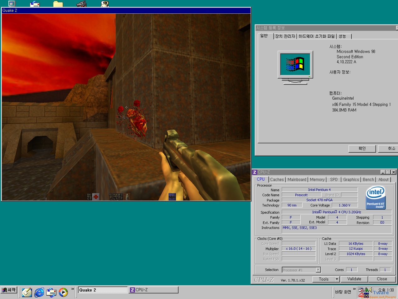 펜티엄4 3.0E, DDR 266 512MB x 2, 865G 내장 그래픽 플스1 에뮬.