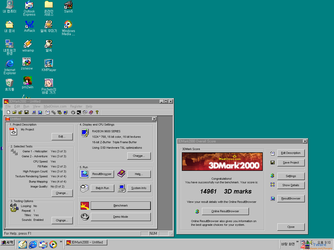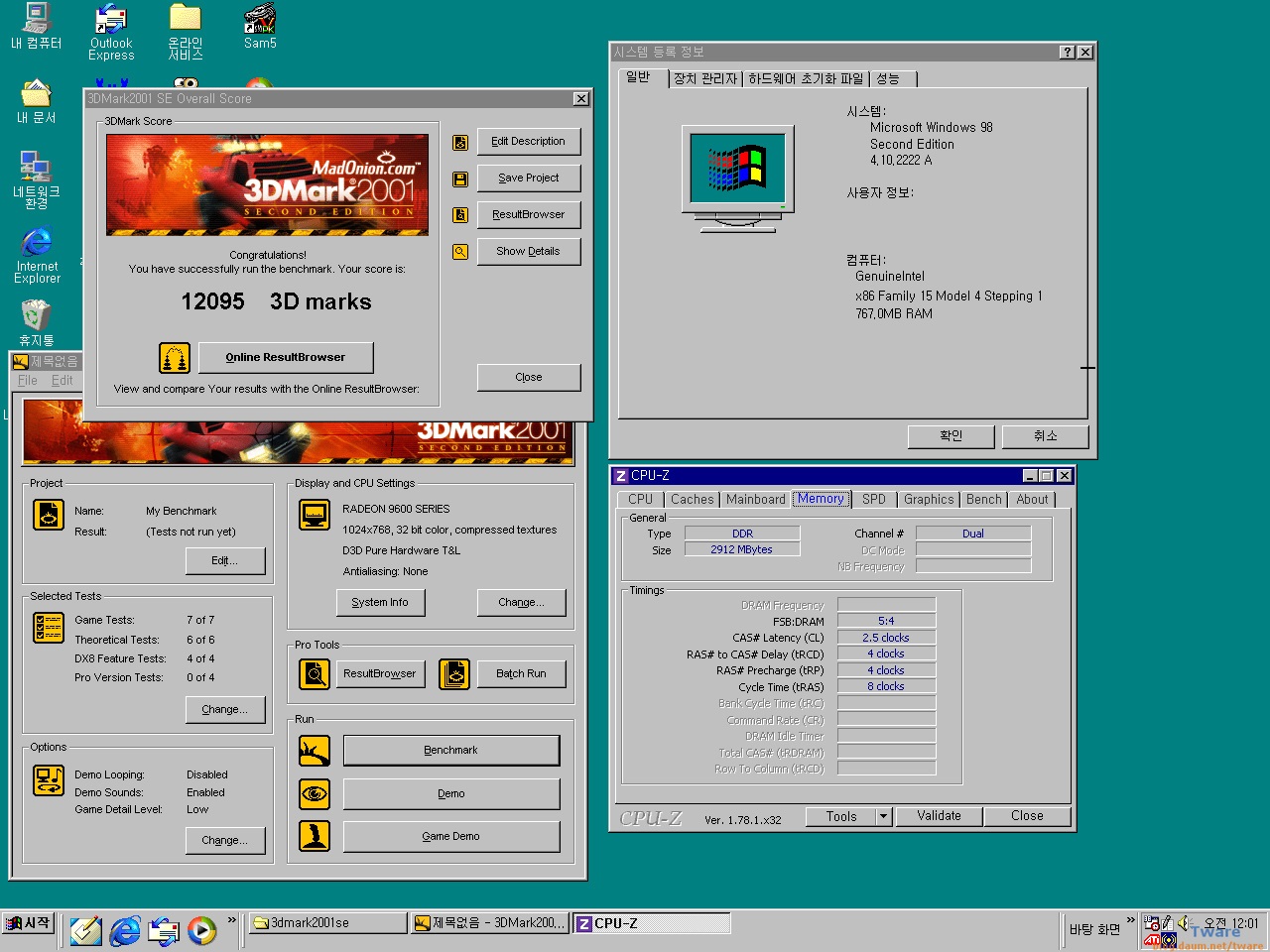 윈도 98SE 펜4 3Ghz 라데온 X800 GTO 3D Mark 2001SE.