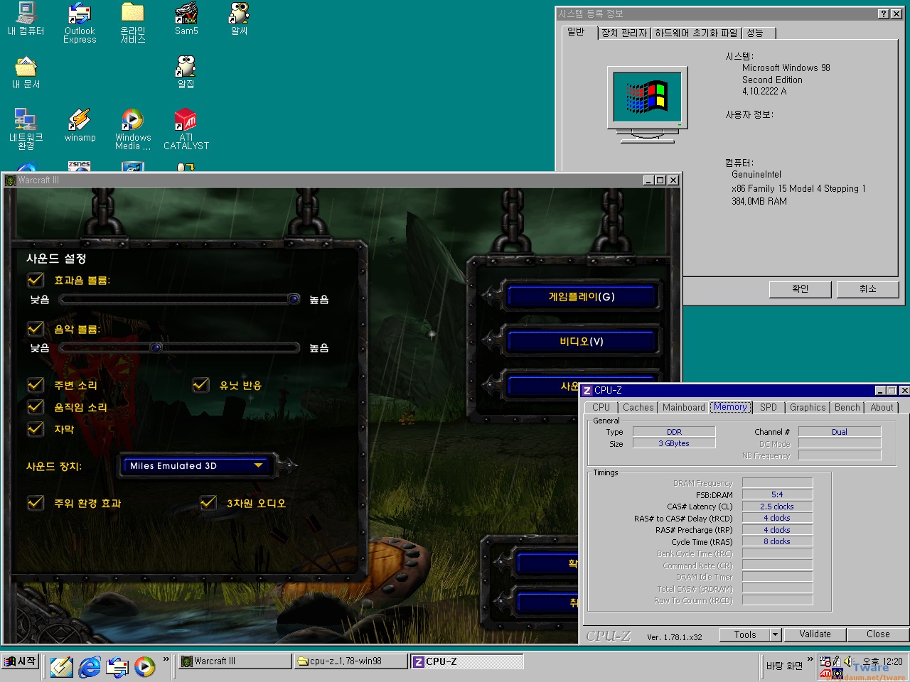 윈 98SE 펜4 3Ghz 라데온 X800 GTO 스타 한글패치판과 각종 게임 및 에뮬레이터 동영상 음악 플레이.
