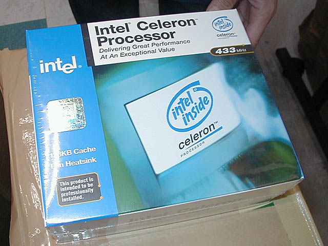 Celeron 433MHz가 아키하바라에서 판매 개시되었다. 이 제품은 외부 66MHz, 내부 6.5 배의 433MHz으로 동작하는 Celeron 최상위 모델. 판매되는 것은 Socket 370 메인보드에 사용하는 PPGA 유형만으로, Slot 1의 SEPP 유형은 판매되고 있지 않다. 또한 상품 형태도 CPU 쿨러를 동봉한 Intel 정품 소매 패키지만으로 CPU를 알몸으로 판매하는 벌크 제품은 나돌고 있지 않다. 최저가는 22,500엔 (소프트 크리에이트 FM 관). 또한, 조사 시점(20일)에 이 Celeron 433MHz는 미발표 제품.