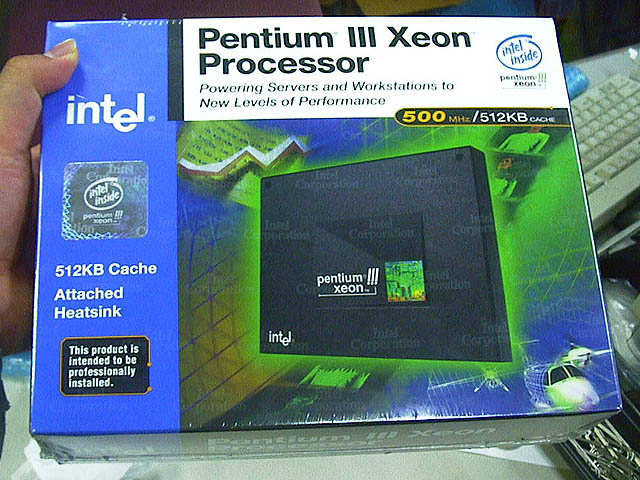 또한 Pentium III Xeon 500MHz의 판매도 시작 되었다. Pentium III Xeon은 CPU 코어와 동기화 되어 동작하는 2차 캐시를 (제온은 고속 (고가) 인텔 커스텀 SRAM 사용으로 코어와 동클럭 작동, 펜티엄 브랜드 슬롯 제품은 속도가 낮은 (코어의 절반 속도로 동작하는 저렴한) 타사의 SRAM을 사용.) 탑재한 서버용 CPU로 Pentium III와 마찬가지로 Streaming SIMD Extensions (SSE)라 부르는 멀티미디어용의 새로운 명령이 탑재되어 있다. 재고를 확인한 것은 2차 캐시 512KB 버전의 리테일 패키지만으로, 가격은 128,000 엔 (USER 'S SIDE 본점). 이 외에도 캐시 1MB 버전과 2MB 버전을 포함하여 주문 발주에 의한 판매를 시작한 샵이 복수 있다.