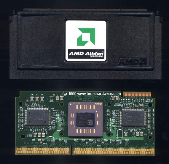 일본 AMD는 K7 코드 네임으로 불리던 차세대 프로세서 "Athlon (애슬론)"의 출하를 시작했다고 발표했다. 일반 사용자용 출시는 3분기 예정이다. 클럭은 600 / 550 / 500MHz의 3종으로 1,000 개 기준으로 개당 각각 90,870엔, 62,270엔, 42,120엔. 550MHz / 500MHz의 가격은 동 클럭의 Pentium III 보다 약간 낮게 설정 되었다. 커넥터는 Slot A 로 모양은 Slot 1과 동일하지만, (버스) 프로토콜은 EV6를 사용한다. (버스도 다르고, 각 핀의 역할도 다르기에 당연히 인텔 슬롯1과 호환 불가에, 슬롯도 돌린 모양. 컴팩에 인수된 DEC의 EV6버스 라이센스)