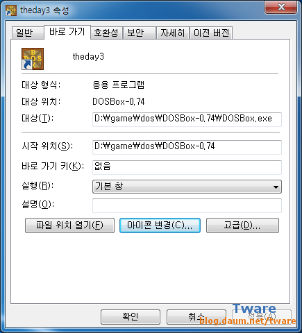 대상(T) : D:\game\dos\DOSBox-0.74\DOSBox.exe 라고 되어 있죠.