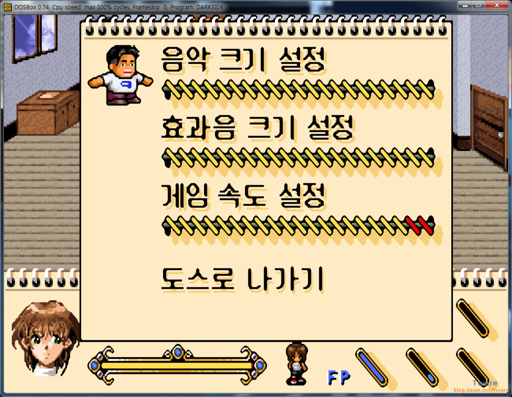 그리고 확인을 눌러서 수정을 끝내고, theday3 바로 가기를 누르면 그날이 오면3 가 바로 실행 됩니다. (혹 헷갈리는 분이 있을까봐 다시 얘기하면, 여기서 게임의 위치는 도스박스에서 C: 로 인식되는 곳이 아니라, 윈도우즈에서의 실제 위치 입니다.)