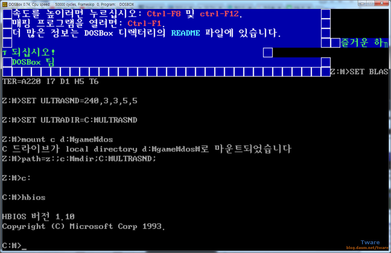 이제 가장 기본적인 설정은 끝났습니다. 이렇게 해서 예전 도스게임을 실행해서 즐기면 됩니다.