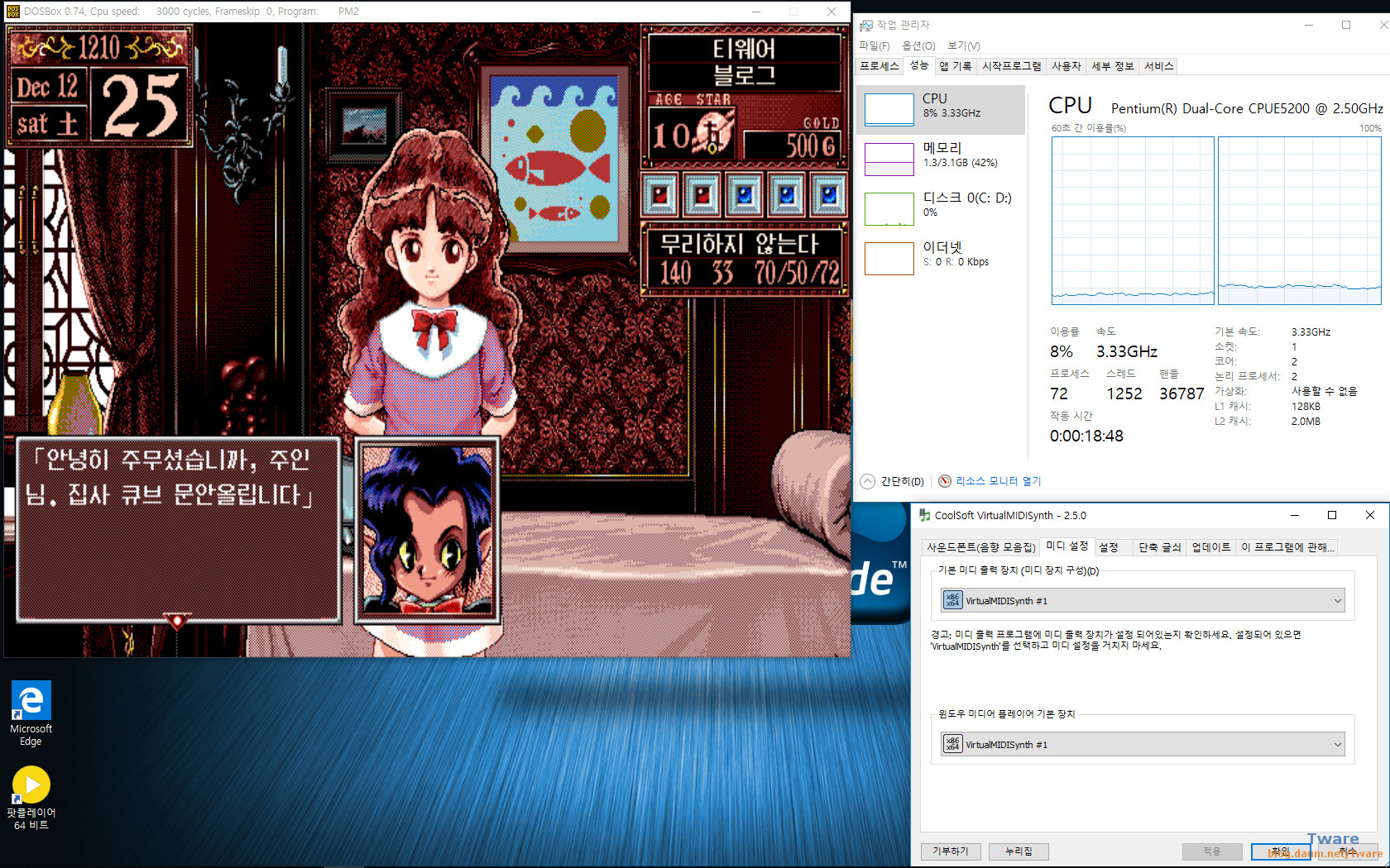 윈도우용 도스박스 0.74버전 입니다.이 글에 많은 영상과 그림을 추가한 관계로 인터넷 익스플로러(IE 11 포함 이하) 사용자는 PC 성능과 무관하게 (i7 + SSD라도..) 극심한 렉이 발생 합니다. 접속 테스트로 코어2 듀오 (콘로 3Ghz급) 정도에 HDD 시스템에서 구글 크롬, 모질라 파이어폭스, 마이크로소프트 엣지로 접속하면 아주 약간의 로딩만 있습니다. (스마트폰 등 모바일 접속자는 모바일 파이어폭스로 보세요. 파이어폭스가 더 빠릅니다. 크롬 X ). 각각의 브라우저를 추가로 설치하시거나, 윈도우에 따라 엣지 브라우저가 기본 설치된 운영체제면 엣지로 접속을 하시고, 또는 윈도 7 이상이면 업데이트를 통해서 엣지 브라아저 설치후 접속 하셔도 됩니다. 로딩을 아주 잠시만 기다리세요. 만약 접속시 각 그림들이 제대로 보이지 않고 대신 곰돌이 그림이 있다면 F5 키를 눌러서 리로딩 해보세요.(로딩 속도는 접속 시간에 따라 약간 다릅니다. 페이지 접속 시에 브라우저 하단에 yotube 외 몇개 뜨는데, 유튜브 영상 삽입 하면 나오는 겁니다. 저 조차도 youtube는 알겠는데, 저건 뭔가? 해서 검색 사이트에서 색을 해보니까.. 검색된 게시판 글에도 이거 뭐냐고 묻는 질문들이 보이더군요. (악성 코드나, 악성 사이트 이런거 걱정을 해서인지..) 그런데 그냥 유튜브 삽입하면 같이 뜨는 겁니다. 유튜브 관련 통계나 광고 이런쪽인거 같은데.. 유튜브 삽입이 없으면 안뜨는거라.. 저는 이제 신경을 안씁니다. 삽입한 영상을 보면 그게 피가 되고 살이 됩니다. 웬만하면 보세요.)