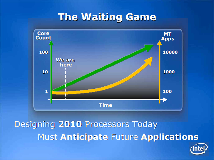 CPU 코어 자체의 성능 향상은 막히고 있다. 반도체 스케일링의 둔화, 명령어 레벨의 병렬성 "ILP (Instruction-Level Parallelism)"의 향상의 한계 (IPC 증가 한계), CPU 설계의 복잡화라는 것이 원인이 되고 있다. 이것은 거의 CPU 업계의 공통 인식되고 있어, 그에 따라 급격한 멀티 코어로의 커브를 틀었다.