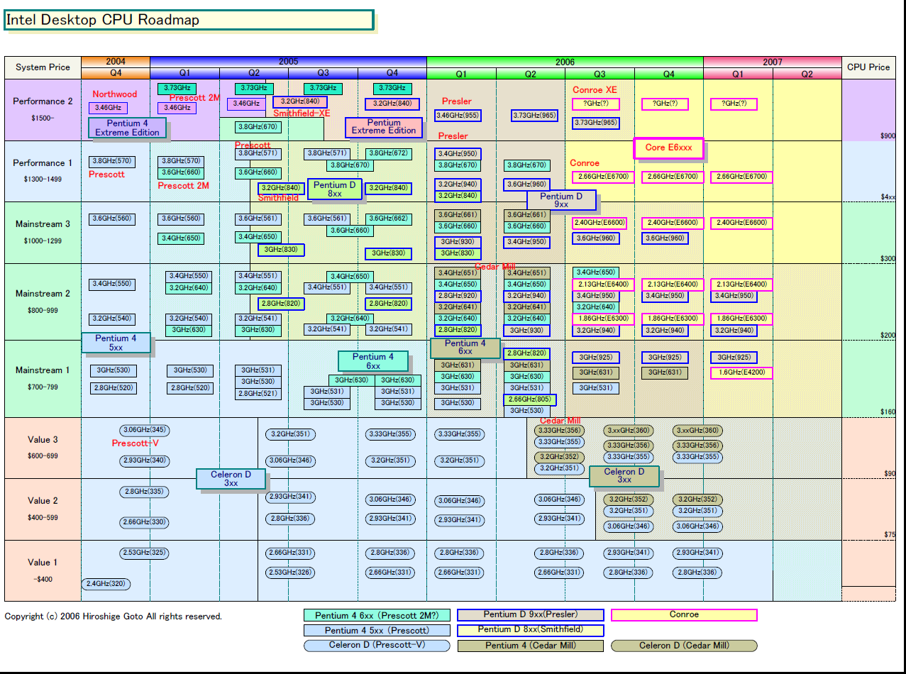 Conroe 도입 계획의 상세함이 보인 것으로, Intel의 듀얼코어 경사가 점점 급격하게 있는 것이 판명되어 간다.