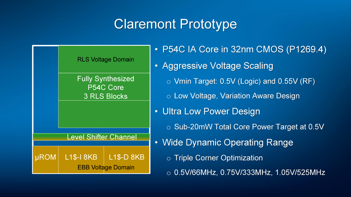 Near-Threshold Voltage 기술의 시험제작 칩 "Claremont"의 P54C 코어